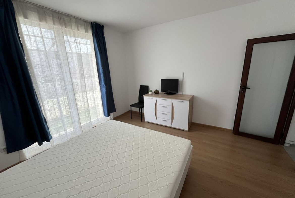 Имотен Център България предлага за продажба напълно обзаведен двустаен апартамент, разположен на партерен етаж в сграда с Акт 16 от 2021 г. Имотът е с обща площ от 93 кв.м и включва: просторна всекидневна, спалня, коридор, баня с тоалетна и собствен двор/тераса. Наземно паркомясто на цена 15 000€ . Отлична локация в близост до университети, магазини и градски транспорт.