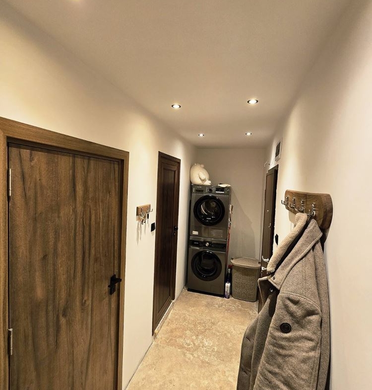 Жилището е изцяло реновирано с висок клас материали: осем камерна PVC дограма с троен стъклопакет, две външни стени изолирани с 10см изолация, нови ел. и ВиК инсталации, каменна вата на таваните, поръчкови мебели и нови уреди с гаранция.