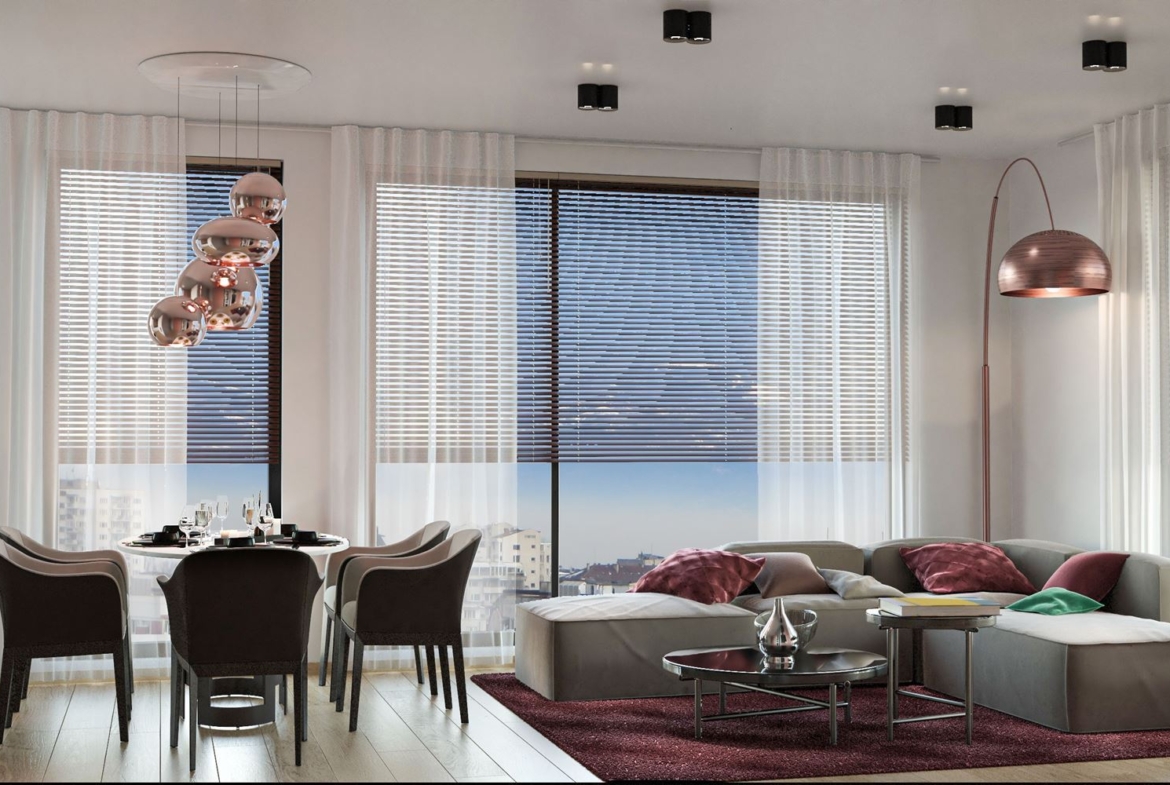 Апартаментът е с югоизточно и северозападно изложение, което осигурява отлична естествена светлина през целия ден. От имота се разкрива панорамна гледка към Витоша и Mall Paradise.