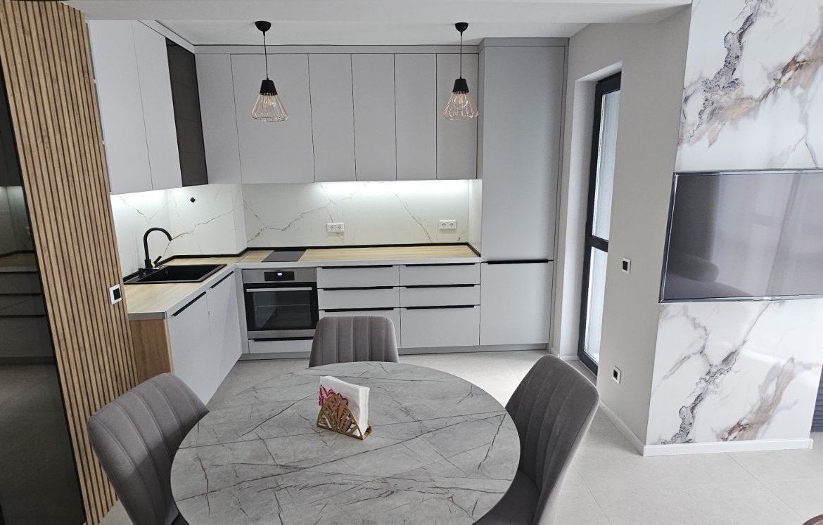 Представяме на вашето внимание тристаен новообзаведен апартамент със следното разпределение:входно антре,дневен тракт с кухненски бокс, две спални, баня с тоалетна,отделна тоалетна и една тераса.Жилището е оборудвано с висок клас мебели и електроуреди, като разполага с цялата необходима техника-два броя инверторни климатици,комбинирана пералня със сушилня,съдомиялна,хладилник,аспиратор и индукционни котлони. Апартаментът е разположен във вътрешна сграда, с изглед към вътрешен двор, което допринася за тишина и спокойствие, а същевременно е изключително светъл и топъл.Изложението е юг,запад,север. Комплексът се състои от общо 3 сгради,които са свързани с общ вътрешен двор,който разполага с детска площадка,батут,кът за отдих и зелени площи. Сградите разполагат още с жива охрана,контрол на достъпа и видеонаблюдение.Към жилището има опция за покупка на партерен гараж на стойност от 45 000 евро.Локацията на апартамента е отлична,в непосредствена близост до мол 'Парадайс' и метростанция 'Витоша'- на 10 минути пешеходно разстояние.Поради отличното местоположение жилището е подходящо както за живеене така и за инвестиционни цели(отдаване на нощувки или дългосрочен наем).За повече информация и насрочване на огледи,моля обадете се на посочения телефон.Отговорен брокер за имота-Велислав Шопов