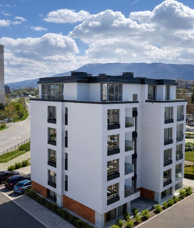 - Сграда в модерен стил, луксозно изпълнение на фасада и общи части, влагане на материали от най-висок клас. Живущите ще могат да се насладят на богато озеленена паркова среда с осветени алеи, пейки, детска площадка и контролиран достъп.