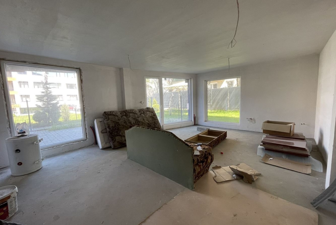 Предлагаме тристаен апартамент в малка жилищна сграда, част от затворен комплекс, състоящ се от две жилищни сгради. Жилището е позиционирано на първи, партерен етаж и се състои от коридор, просторна всекидневна с кухненски бокс, две спални, две бани с тоалетна, прилежащ двор. ВЪЗМОЖНОСТ ЗА ДОПЪЛНИТЕЛНО ЗАКУПУВАНЕ НА ПАРКОМЕСТА!