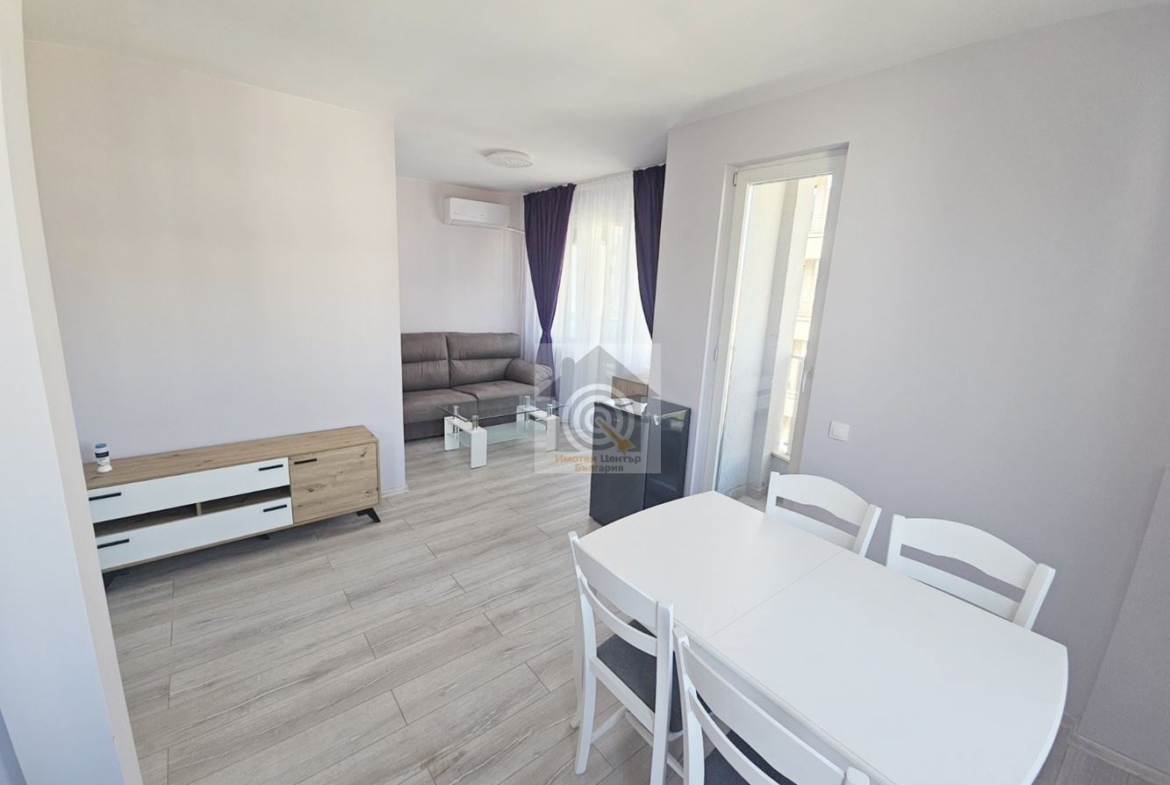 Жилището е ново и напълно обзаведено. Разполага с комфортна дневна с трапезария, оборудвана кухня с вградени уреди, пералня и сушилня. Спалнята е уютна, а банята е завършена с мраморни плочки. Оферта №95990